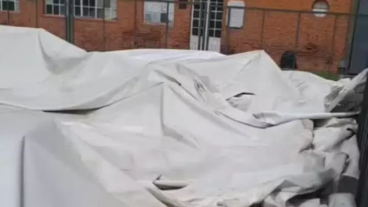 Debido a la tormenta se cayó la carpa de la pileta climatizada del Club Junín, sufriendo daños en las instalaciones.