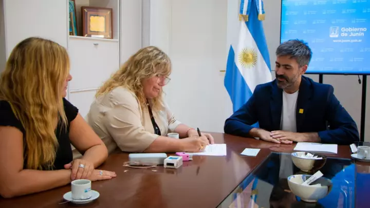 El intendente Juan Fiorini recibió este martes, junto al secretario General del Municipio, Manuel Llovet, a la presidente del Consejo Escolar de Junín, Rosana Morando, quien estuvo acompañada por Soledad Artime y Analía Gutierrez para hacer entrega de un cheque correspondiente al Fondo por alquiler de Banquinas, como también repasar el plan de obras 2025/2026 que el Municipio se encuentra ejecutando en los establecimientos educativos.