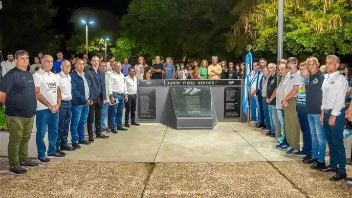 Este jueves 2 de abril por la mañana se llevó a cabo el acto como todos los años en la plazoleta “Héroes Caídos”, en donde se rinde homenaje a los cuatro soldados juninenses que dieron su vida en defensa de la soberanía como Gustavo Seitún, Alfredo Jurio, Ricardo Gurrieri y Miguel Ángel Solano.