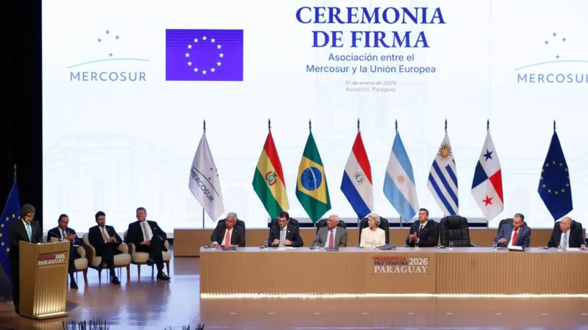 De la firma el pasado 18 de enero que formalizaron los cancilleres del Mercosur y los líderes de la Unión Europea participaron también como testigos de honor el presidente Javier Milei, su par de Uruguay, Yamandú Orsi, y el presidente anfitrión, Santiago Peña. También llegaron a Asunción los presidentes de Bolivia, Rodrigo Paz, y de Panamá, José Mulino, ambos países en distintas etapas de incorporación al bloque sudamericano.