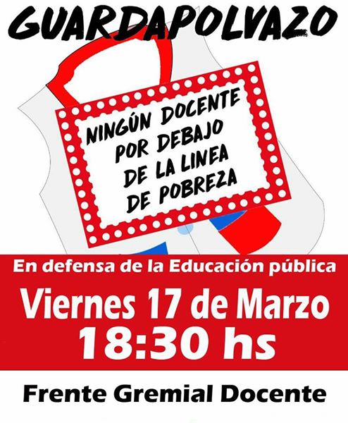 Este viernes 17 continuará el paro docente en las escuelas de la provincia de Buenos Aires con la adhesión de los gremios mayoritarios. En tanto, a la tarde, desde las 18.30 se concentrarán los gremios en la plaza Veteranos de Malvinas -ex Fuerzas Armadas- para realizar el "Guardapolvazo" una convocatoria dentro del plan de lucha que vienen llevando a cabo desde el lunes 6 .