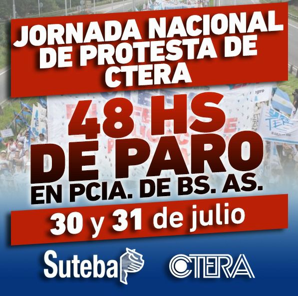 De esta manera SUTEBA dispuso también realizar un paro por 48 horas.