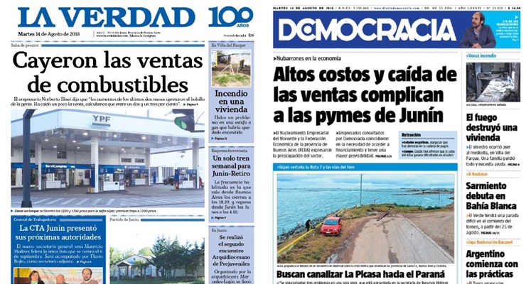 "Cayeron las ventas de combustibles"; "Altos costos y caìdas de ventas complican a las pymes en Junín".