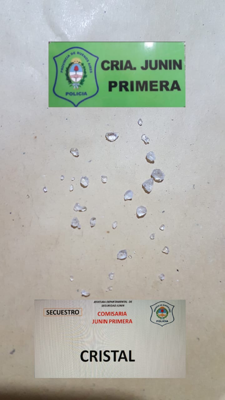 Al requisarse sus pertenencias, se le secuestraron dos pastillas de extasis y 20 gramos de Cristal lo que fue corroborado por policías de la Delegación de Drogas Ilicitas de nuestra ciudad luego de realizarse el test orientativo, dándose intervención a la fiscalía especializada en estupefacientes que avaló la aprehensión del joven que será indagado este lunes por infracción a la ley 23.737.