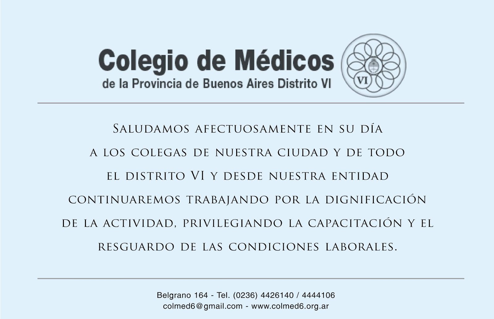 En la fecha se celebra el Día del Médico. El presidente del Colegio de Médicos Distrito VI, con asiento en nuestra ciudad, Jorge Lusardi manifestó que "hemos tenidos, como todas las actividades, innumerables dificultades para realizar el ejercicio profesional tanto desde el unto de vista operativo como desde el unto de vista remunerativo en todo lo que hace a nuestro quehacer profesional. Hemos tenido problemas por la falta de una remuneración acorde y las condiciones laborales que necesitamos como también de todo lo que hace a la aparición de la teleconsulta, una metodología nefasta".