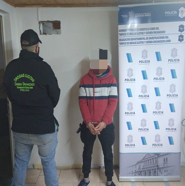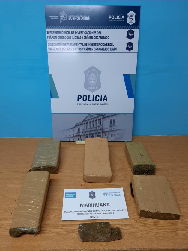 En forma inmediata se lo puso en conocimiento de la labor realizada a magistrado de intervención Juez Federal Dr. Héctor Pedro Plou, secretaria penal del Dr. Tobías Rueda y Fiscal Federal Dr. Eduardo Norberto Varas, ambos del Departamento Judicial de Junín, quienes dispusieron el inmediato allanamiento en la urgencia del domicilio del sujeto, en la ciudad de Junín donde se procedió al secuestro de cuatro panes (ladrillos) de marihuana.