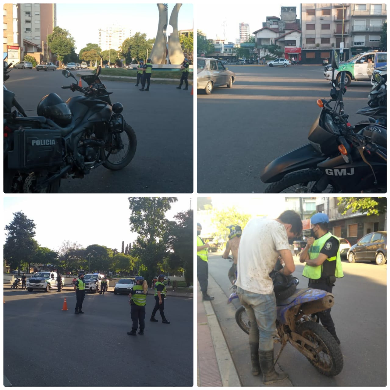 Bicipolicías y grupo motorizado de la Policía Local, en Sáenz Peña y avenida San Martín identificaron a todos los ocupantes y vehículos que se movilizaban por el lugar.