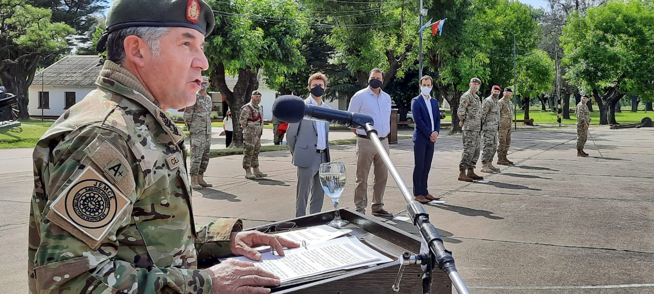En la formación, llevada a cabo con todas las medidas correspondientes a la prevención del contagio de Covid- 19, se cumplieron las formalidades de rigor y el jefe del Ejército dirigió palabras a los presentes y, en ellos, a todos los hombres y mujeres que integran el arma de Artillería.