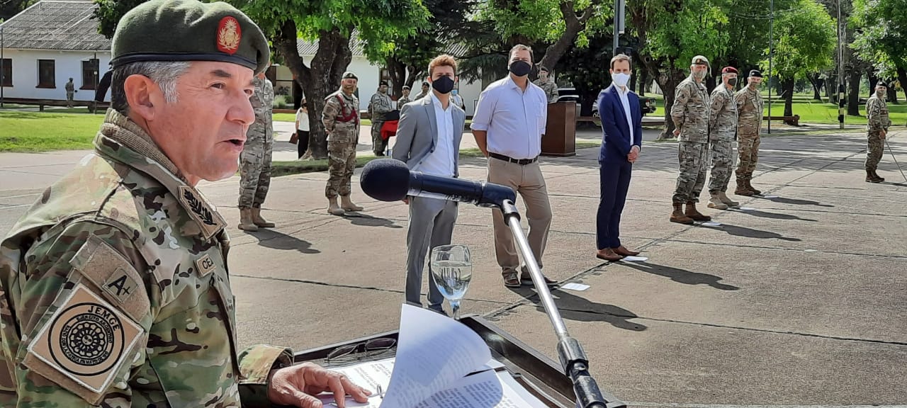 Finalizada la ceremonia, recorrió las instalaciones del cuartel guiado por el Jefe de Unidad teniente coronel Carlos Gastón Correa, revistó el nuevo material de dotación entregado a la Unidad 12 (doce) camiones OSHCOSH y tomó contacto con el personal.El Ejército incorporó camiones militares OshKosh