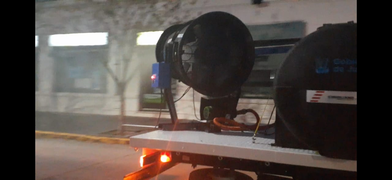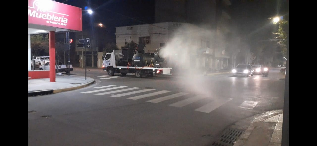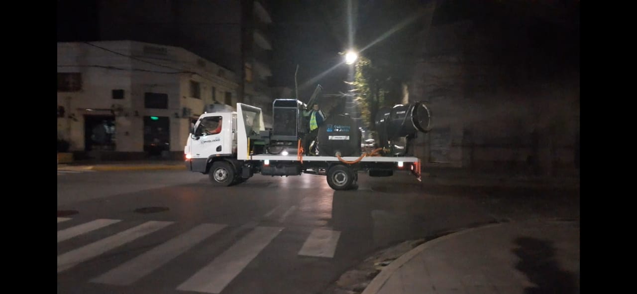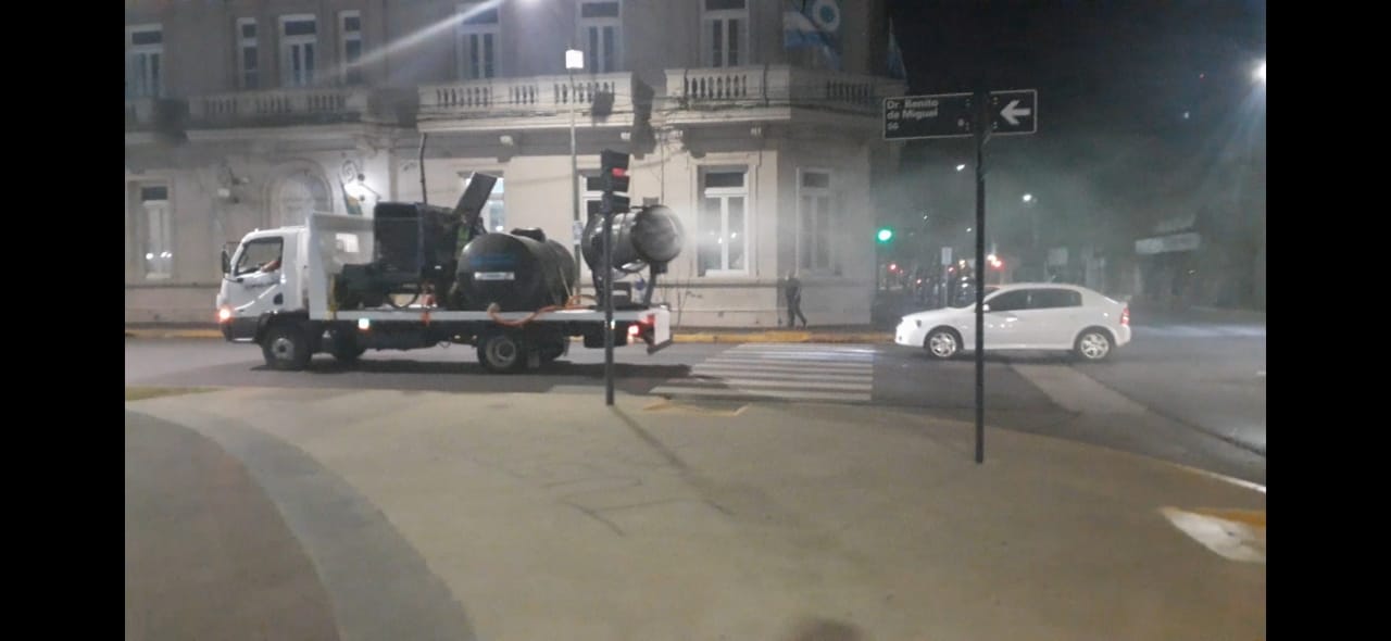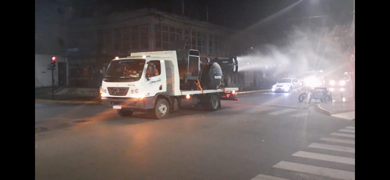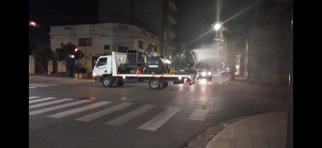 Prosiguió este miércoles la desinfección de espacios públicos en nuestra ciudad, además de la zona céntricas integrando otros circuitos urbanos desinfectados por el nuevo equipo pulverizador a turbina AMC que dispone la Policía Ecológica y el municipio donado por la empresa Cirigliano.