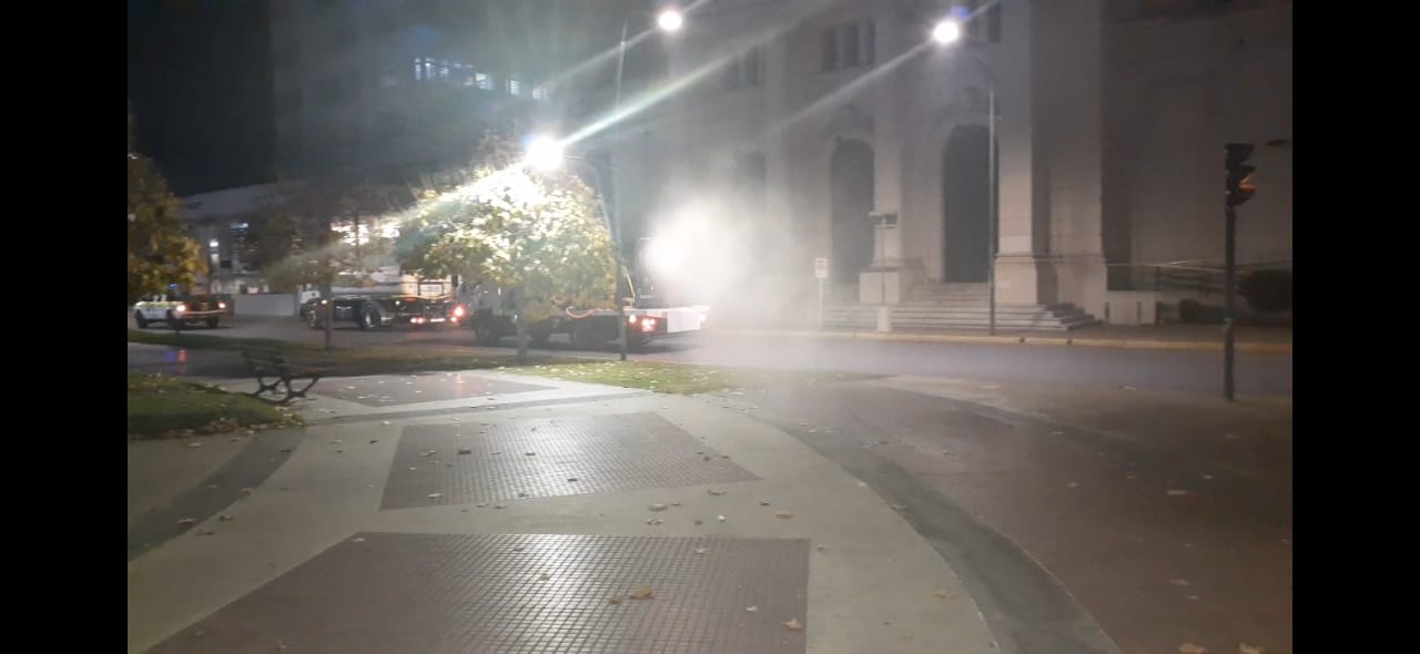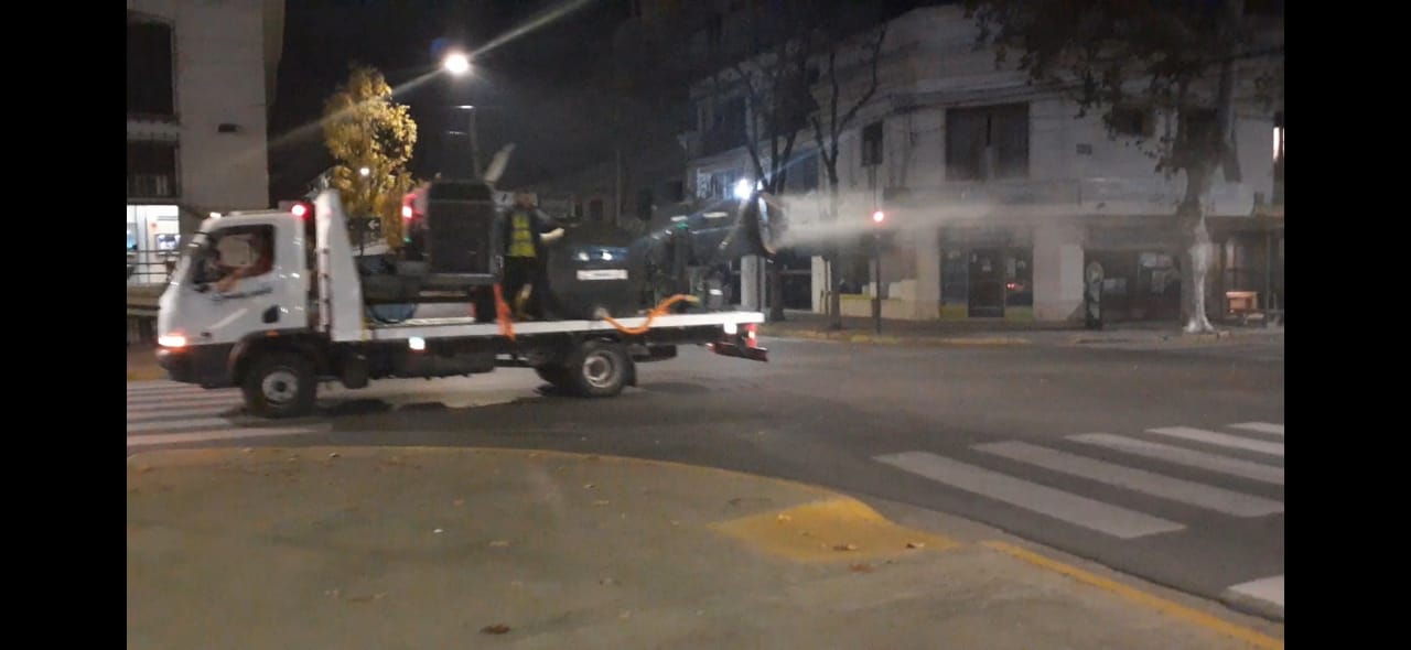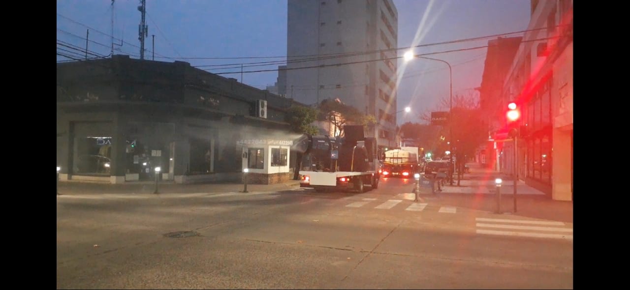La tarea se lleva a cabo después del horario de cierre comercial. El intendente Pablo Petrecca destacó que "esto nos permite desinfectar todas las veredas de la ciudad, en zonas bancarias, comerciales y en los barrios. Es una tarea que se viene realizando con la Policía Ecológica y quiero hacer posible el agradecimiento al personal de la división. Cada vez que hay un llamado por un caso sospechoso concurre la Policía Ecológica para cumplir su tarea además de la tarea de desinfección en los espacios públicos.