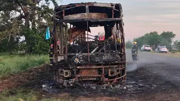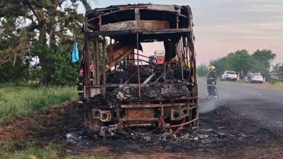 Se incendió en Morse un colectivo que trasladaba chicos de Viamonte Club