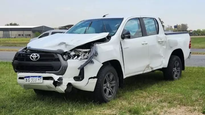 Dos pick up protagonizaron un fuerte choque en el cruce de las rutas 188 y 33. Ambas, de la marca Toyota, modelo Hilux.