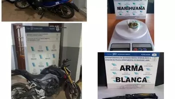 En barrio 9 de Julio, efectivos del Grupo Motorizado de UPPL en horas de la tarde en circunstancias que se encontraban realizados patrullajes preventivos procedieron en A Rodríguez y Av de Circunvalación a la identificación de un sujeto de 20 años de edad, oriundo de General Viamonte a quien le secuestraron en su poder un envoltorio con marihuana y entre sus prendas una navaja. El mismo fue aprehendido por infracción a la ley 23.737 e infracción artículo 43 ley 8031, trasladado a sede Policial y puesto a disposición de la Justicia.