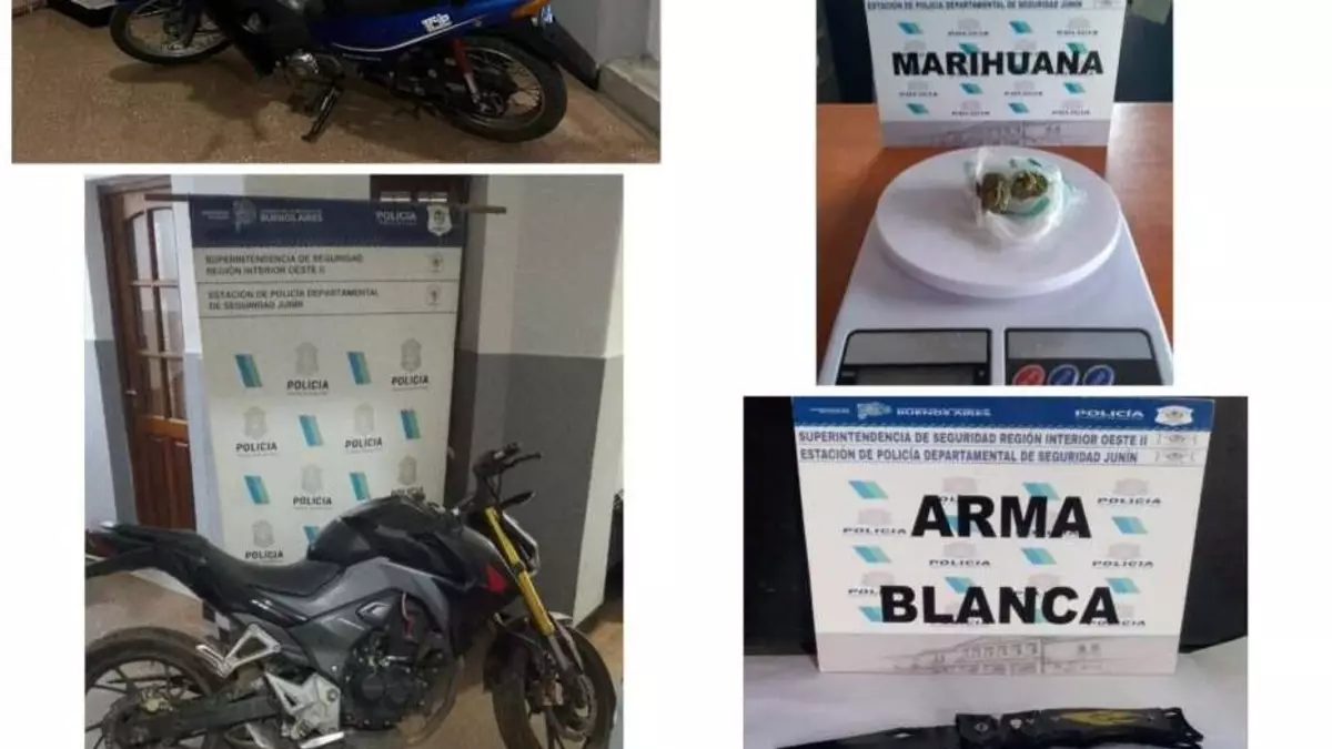 Otro procedimiento fue llevado a cabo por Investigadores de Comisaría Primera. Hallándose los mismos dispuestos en el marco de una investigación por la sustracción de una motocicleta. Tras el análisis de cámaras de seguridad del Centro de Operaciones y Monitoreo del Gobierno de Junín y privadas, tareas de campo llevadas a cabo y testimonios recogidos logran individualizar al autor del hecho. Tras ello solicitan a la Fiscalía interviniente tres órdenes de allanamientos las que fueron otorgadas por el Juzgado de Garantías en turno y diligenciada por los pesquisas en forma conjunta con efectivos del Grupo Motorizado SASU, del Destacamento Policial Laguna de Gómez y del Grupo GAD con asiento de este medio.