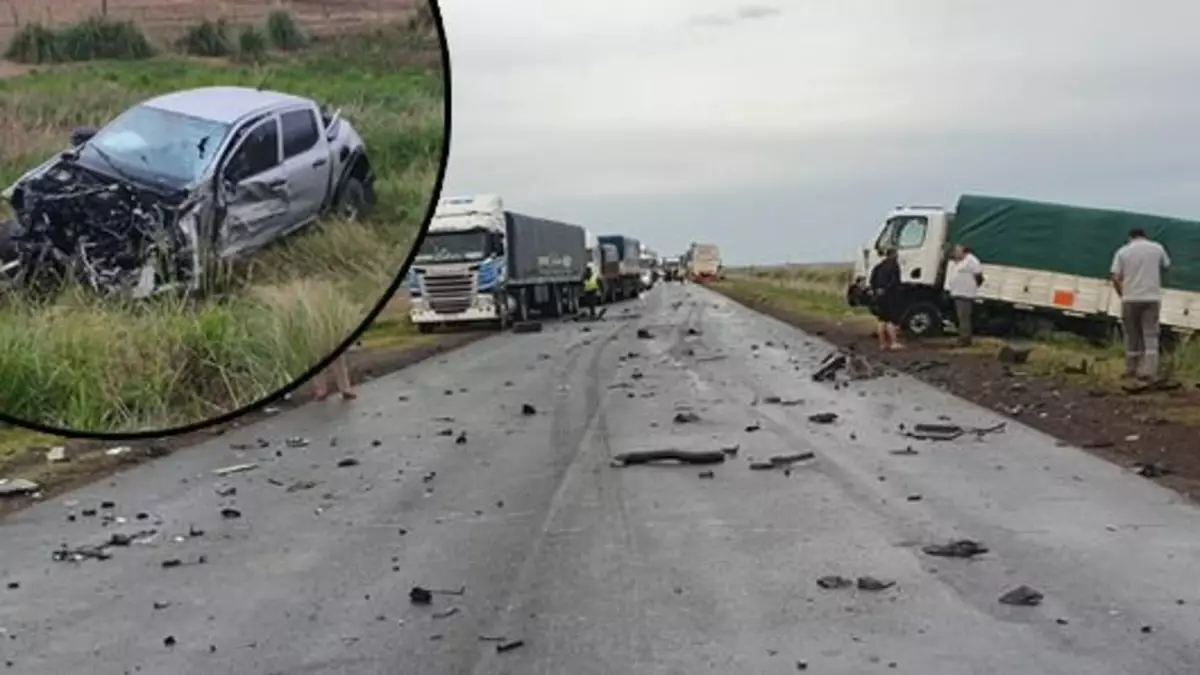 La camioneta impactó contra un camión lechero que estuvo a punto de volcar su acoplado cargado, luego dio contra un cerealero en al frente, sobre su izquierda y finalmente con el tercer camión, de mediano porte.