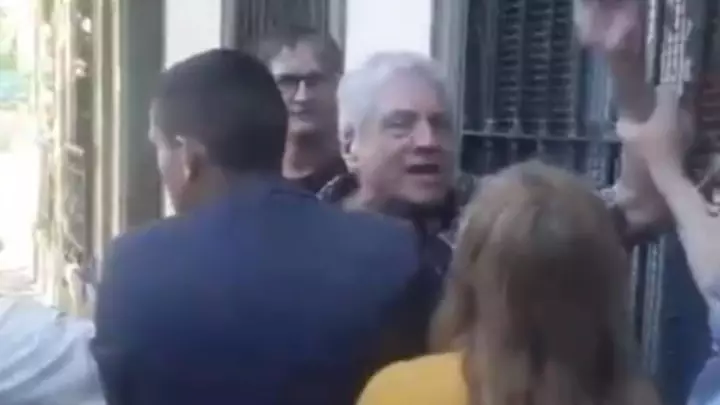 Mientras Santilli se retiraba en un vehículo, militantes libertarios permanecieron en el lugar y uno de ellos se cruzó de vereda para increpar a los manifestantes.