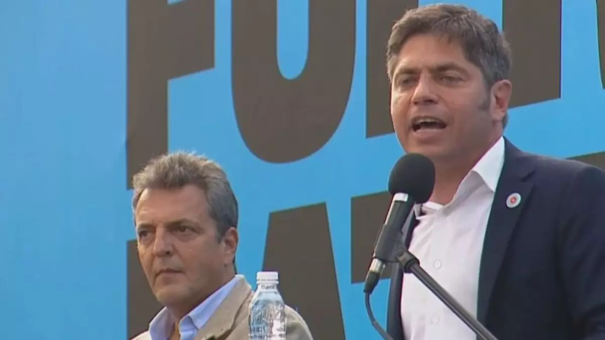 Kicillof estuvo acompañado por la vicegobernadora Verónica Magario, el referente del Frente Renovador, Sergio Massa, y los tres primeros candidatos a diputados nacionales por la provincia de Buenos Aires, Jorge Taiana, Jimena López y Juan Grabois.