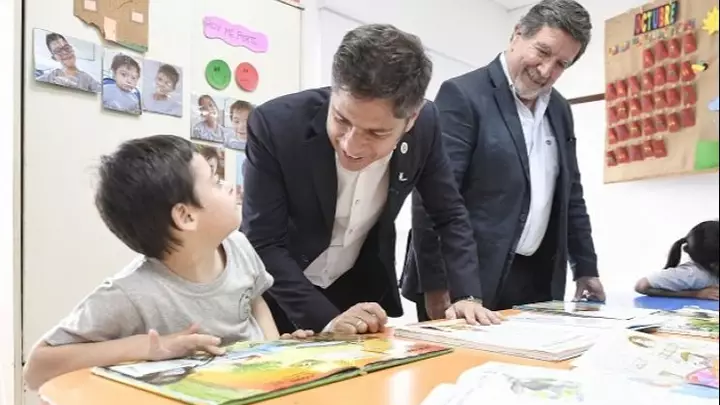 El gobernador de la provincia de Buenos Aires, Axel Kicillof, recorrió este martes la Escuela de Educación Especial N° 5 en el municipio de Pergamino, donde además mantuvo un encuentro con profesionales especializados en discapacidad. Fue junto al director general de Cultura y Educación, Alberto Sileoni; el concejal electo Alejandro Masagué; y la directora de la institución, Valeria Bachanini.