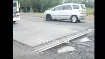 Cruzar las vías en Chacabuco se convirtió en todo una odisea por el estado desastroso de la ruta 7 en ese paso