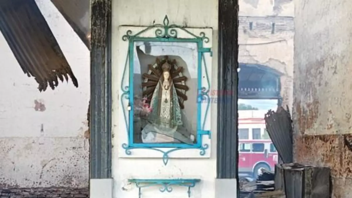 En medio de los restos, aún humeantes de la construcción, intacta, quedó la ermita de la Virgen de Luján.